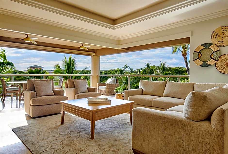 Boasting bi-level Hawaiian-style patios with ocean and garden views, this villa provides a private elevator, fully-equipped kitchen, separate seating area with flat-screen TVs, 3 bathrooms, and a washer and dryer.